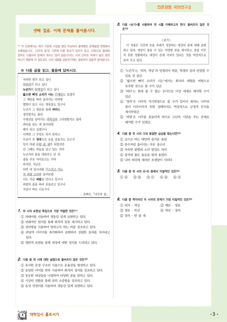 SOLVOOK 현존재쌤 국어연구소 '나무의 꿈' 자료