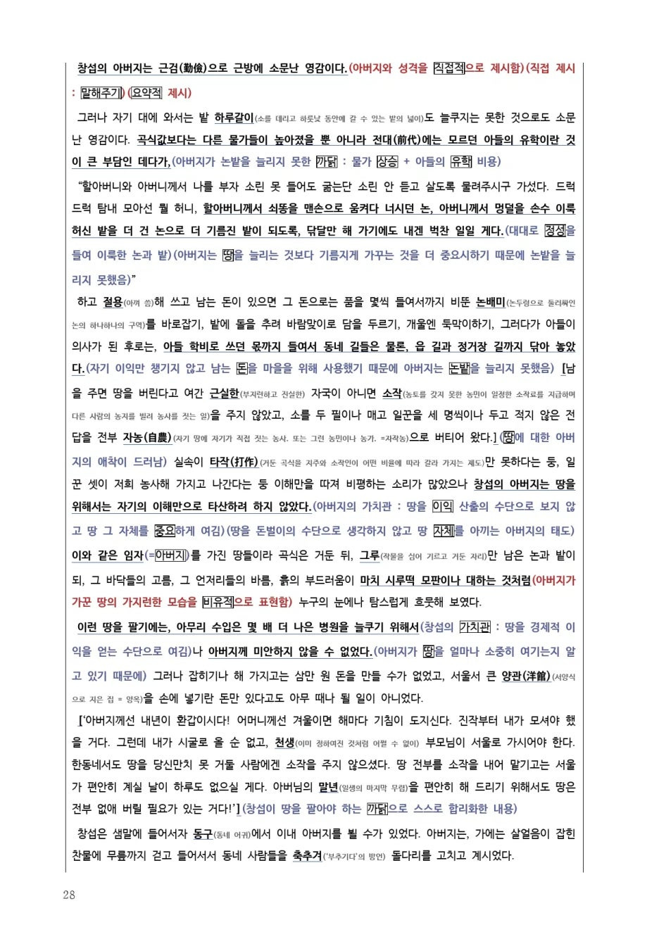 땅을 둘러싼 아버지와 아들 간의 갈등/ 물질 만능주의 가치관에 대한 비판