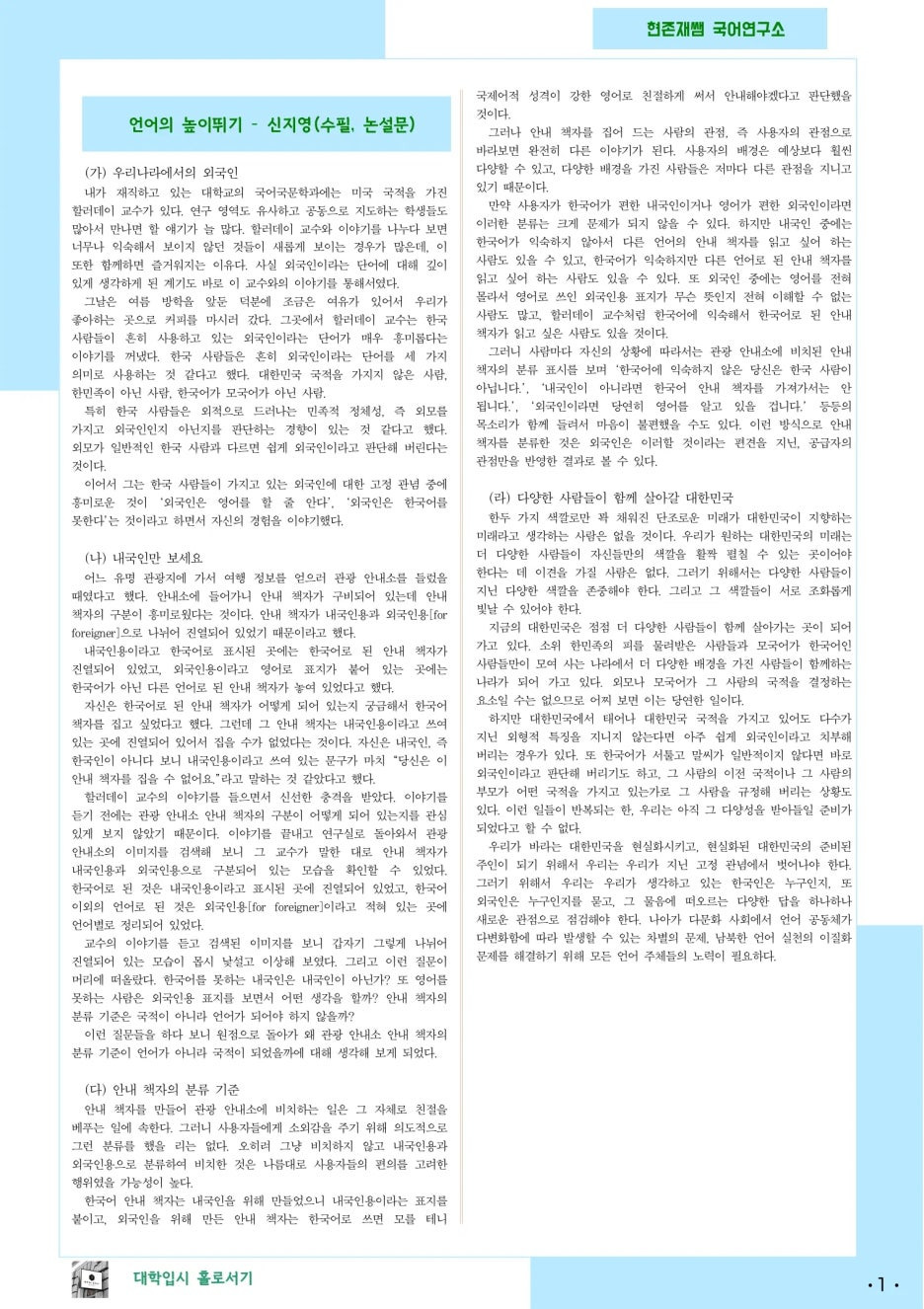 1) 첫 번째 단락 "우리나라에서의 외국인"