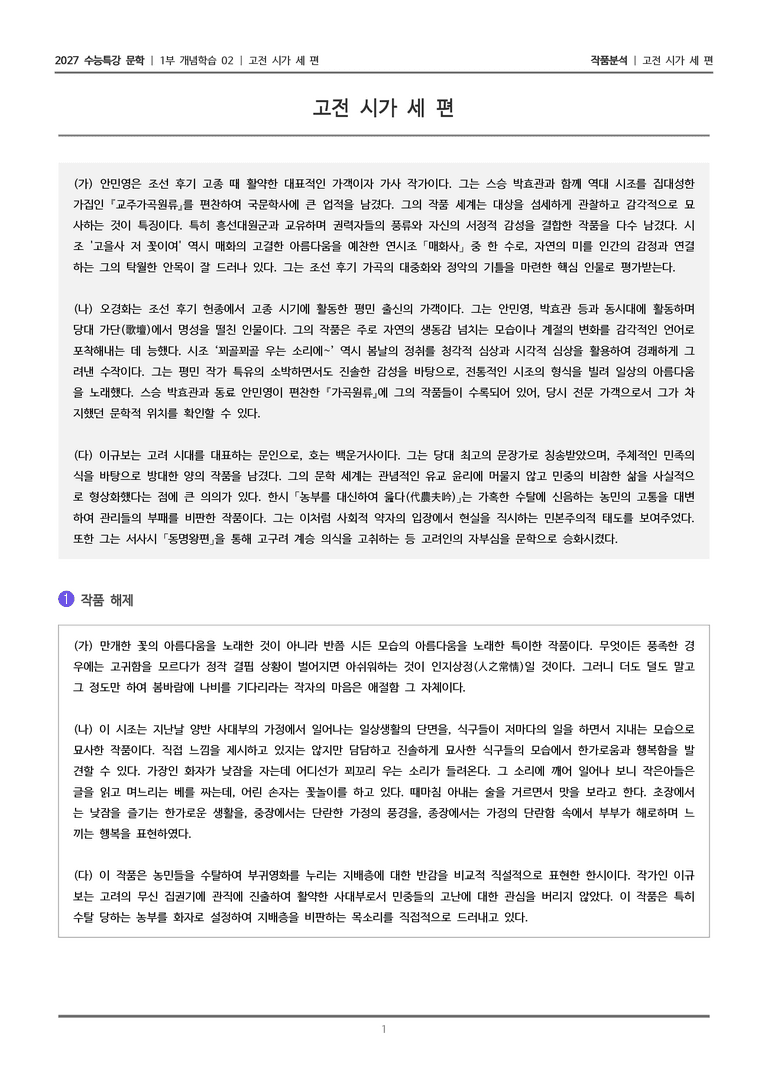| 꾀꼴꾀꼴 우는 소리에~ (오경화) | 2027 수능특강 문학 작품분석 & 예상문제 (1) | 2026.03.17 |