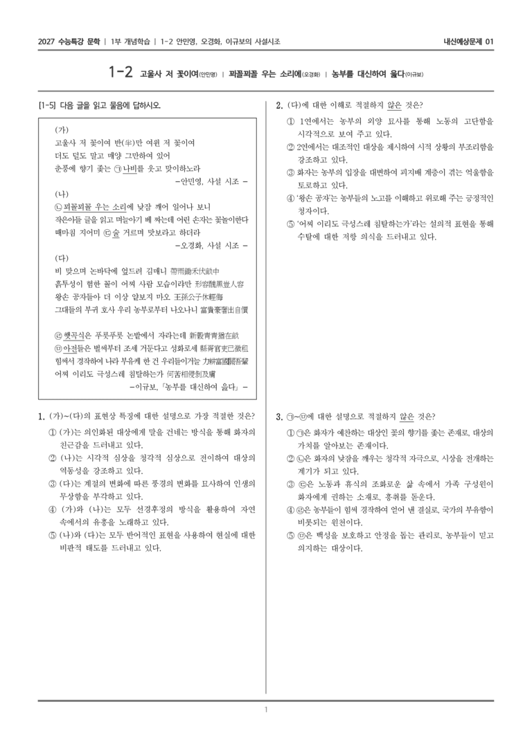 | 고울사 저 꽃이여~ (안민영) | 2027 수능특강 문학 작품분석 & 예상문제 (1) | 2026.03.13 |